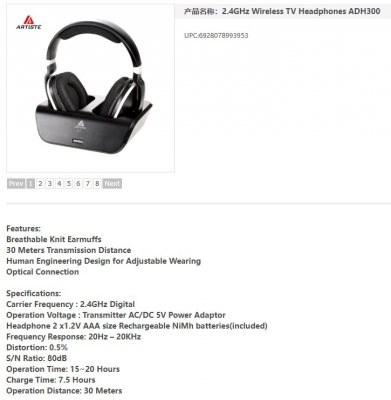Cuffie Wireless ricaricabili per TV Artiste ADH300 2.4GHz Digitali Over-Ear Stereo con Trasmettitore a 30m e Base di Ricarica
